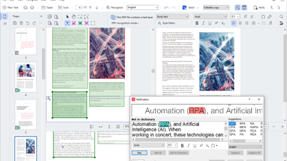 FineReader PDF uses cutting-edge purpose-built AI at each step of document processing. From image enhancements, over object detection to text recognition (OCR), FineReader PDF uses optimized algorithms, generative AI and neural network architectures to deliver the best possible results with unparalleled performance. All our optimized algorithms are publicly available in the ABBYY NeoML.