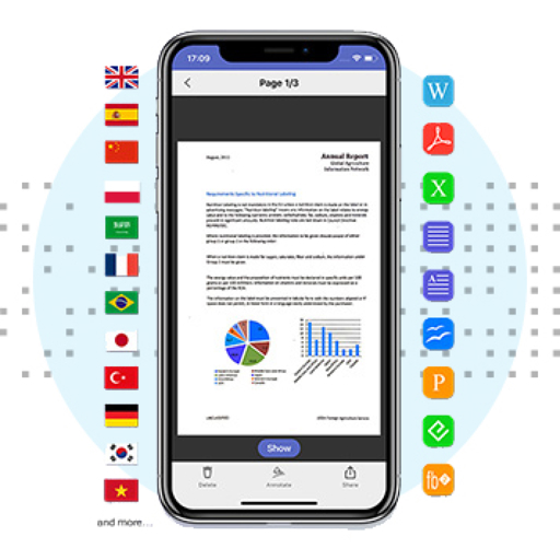 Extract text from scans offline or use online recognition to preserve the original document formatting. Supports 183 languages and 4 formats.