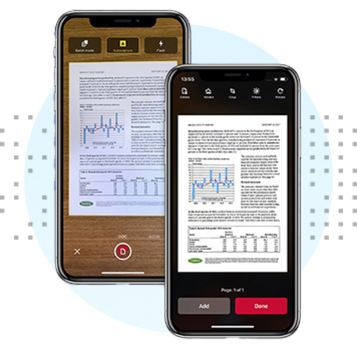 Scan any printed or hand-written papers, create perfect digital copies and save them to JPEG or PDF documents.