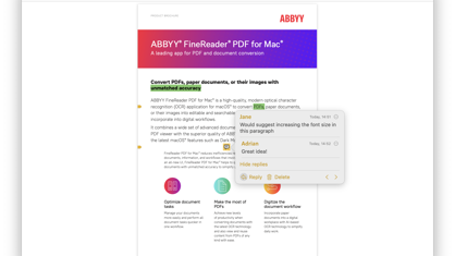 Millions of customers worldwide appreciate and rely on ABBYY FineReader PDF for Mac® to efficiently accomplish document tasks.