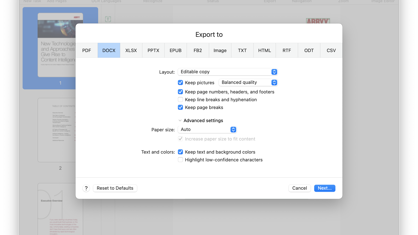 Achieve new levels of productivity when converting documents with the latest OCR technology and view and reuse content from PDFs of any kind with ease.
